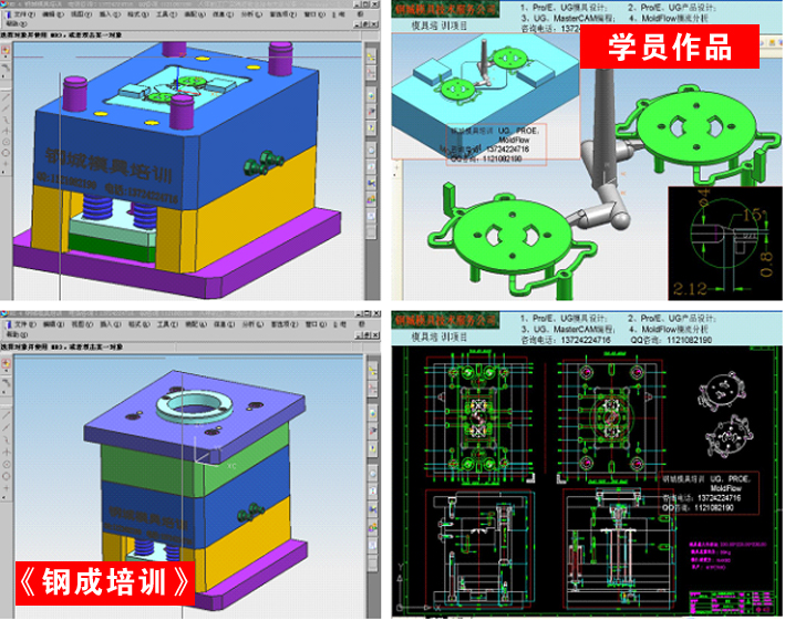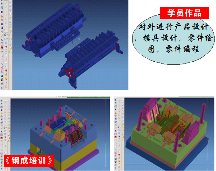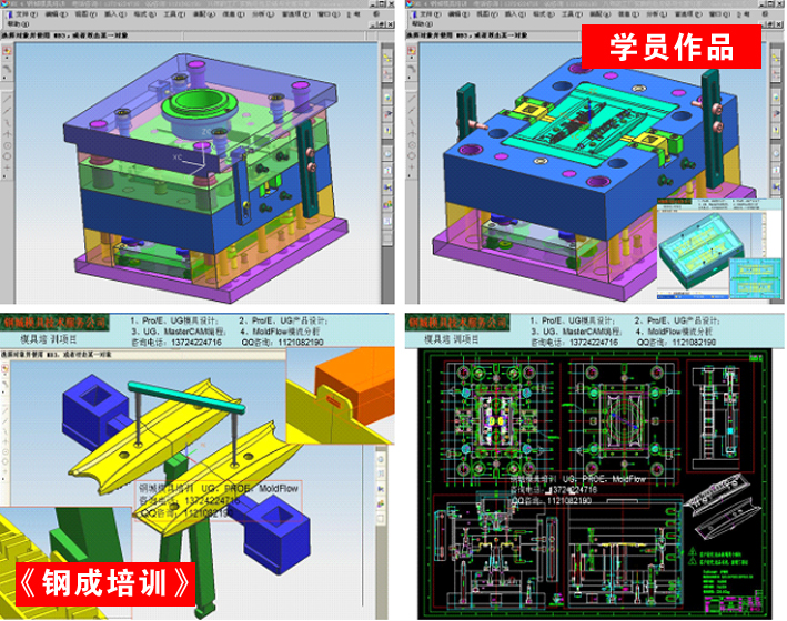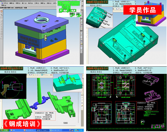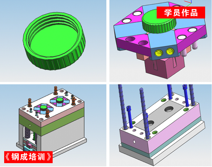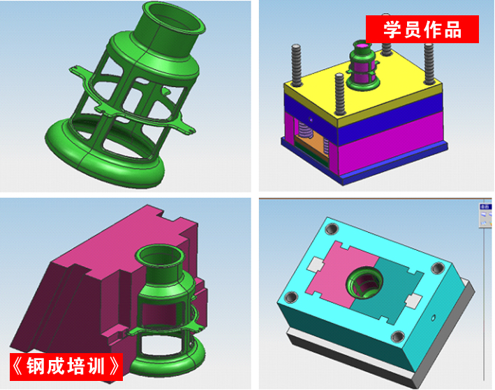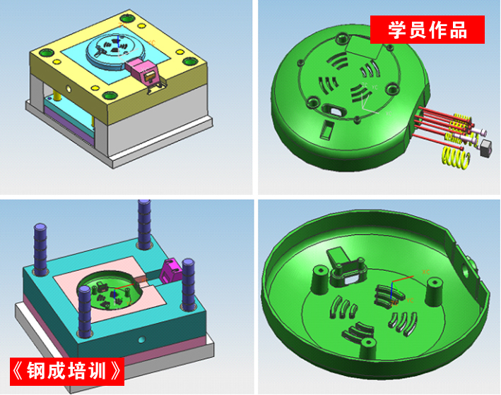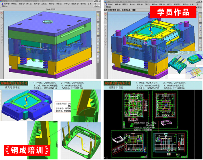 (其中包括,熱流道模具,內外螺紋模具,圓弧抽芯,二資頂出,雙色模具,行位中行位,行位中頂錢,行位中斜頂,內行位,前模斜頂,后模斜頂,各種模具結構講與相應大量練習,使學員做到舉一反三,靈活運用各種模具結構。)